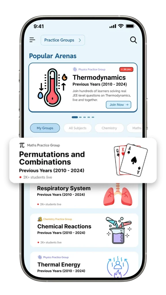 Practice inside focused groups built for JEE, NEET and more.